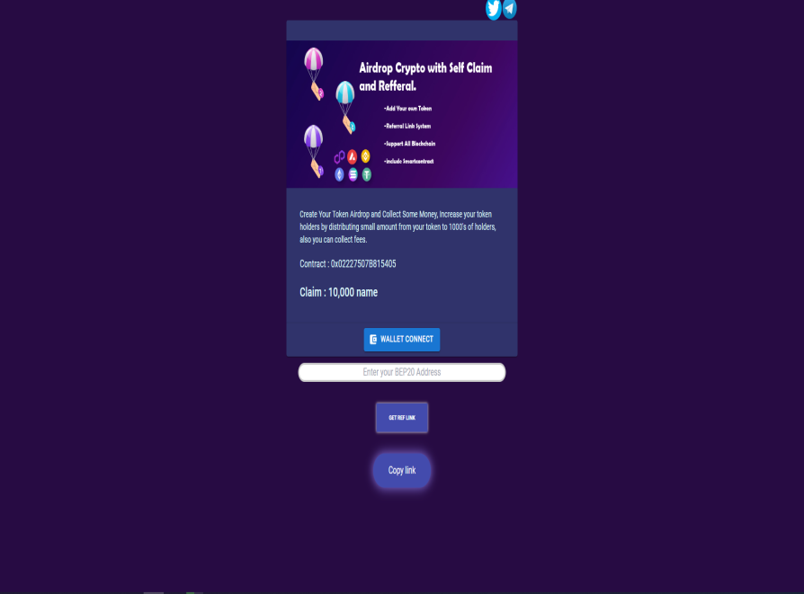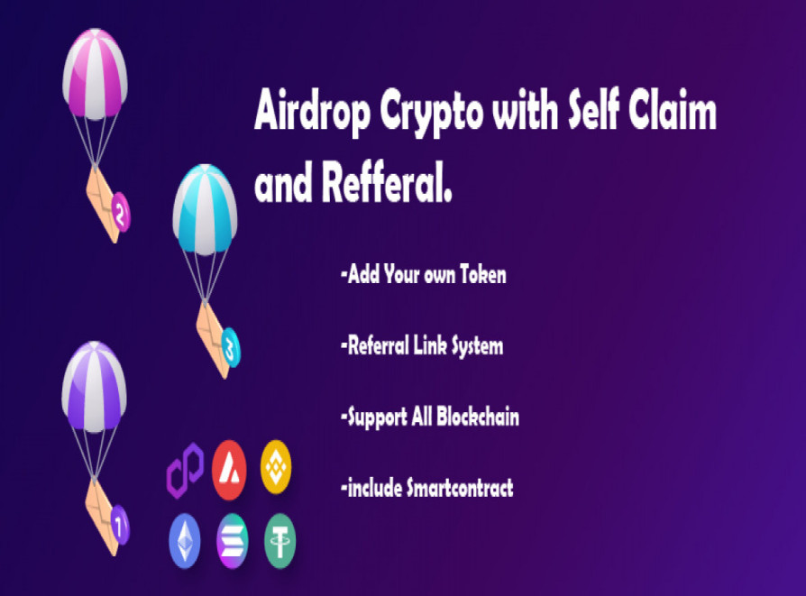 Airdrop Crypto with Claim and Referral -Airdrop Tokens All Blockchain Support , You Can use your own token.